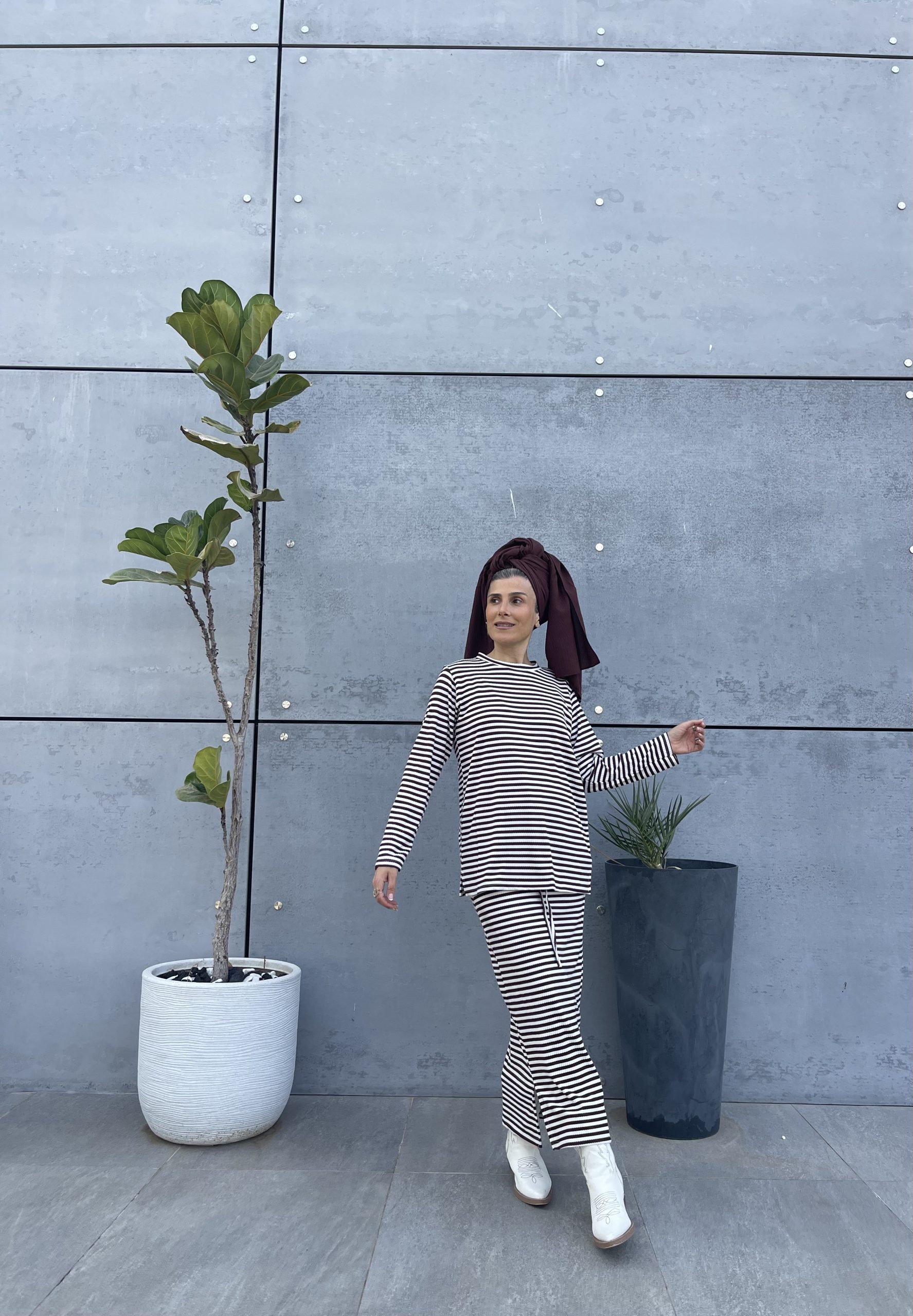 חליפת פסים חצאית בגיזרה ישרה במבחר צבעים
