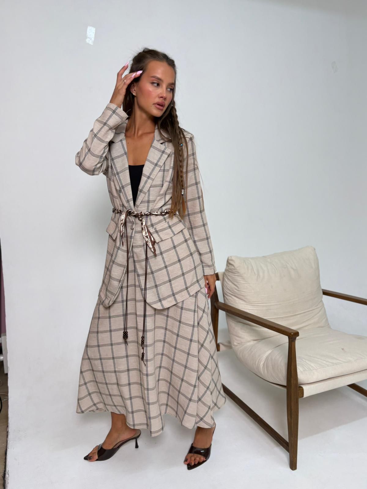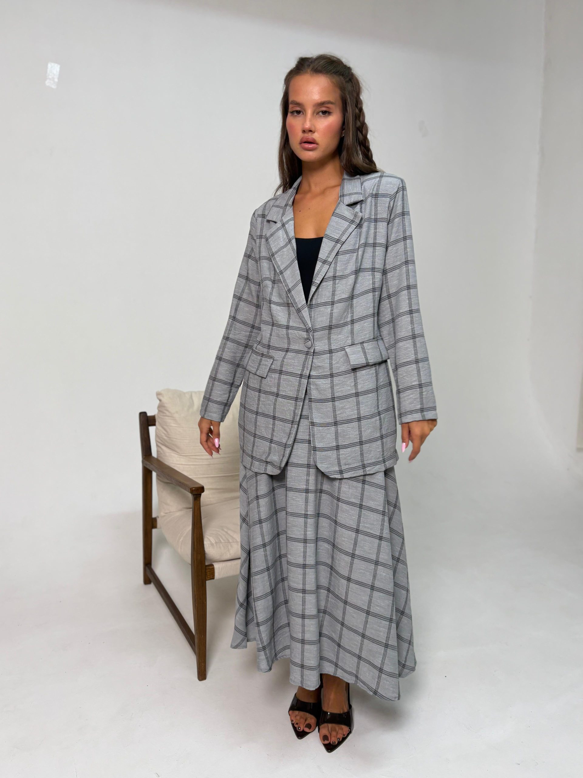 חליפת בלייזר מהודרת משבצות פס בורדו