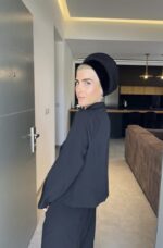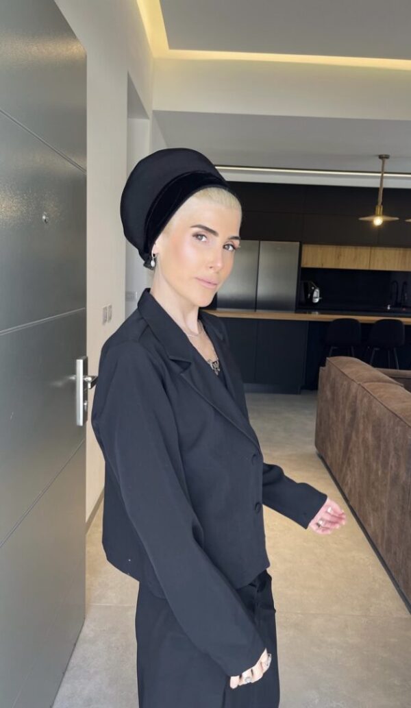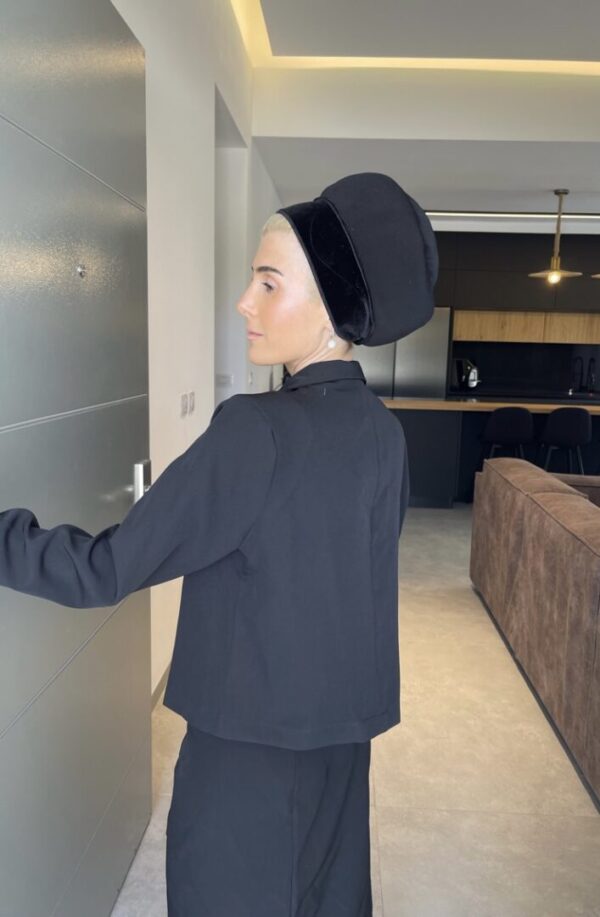 בובו קטיפה 2 שורות עם רצועות-שחור/לבן