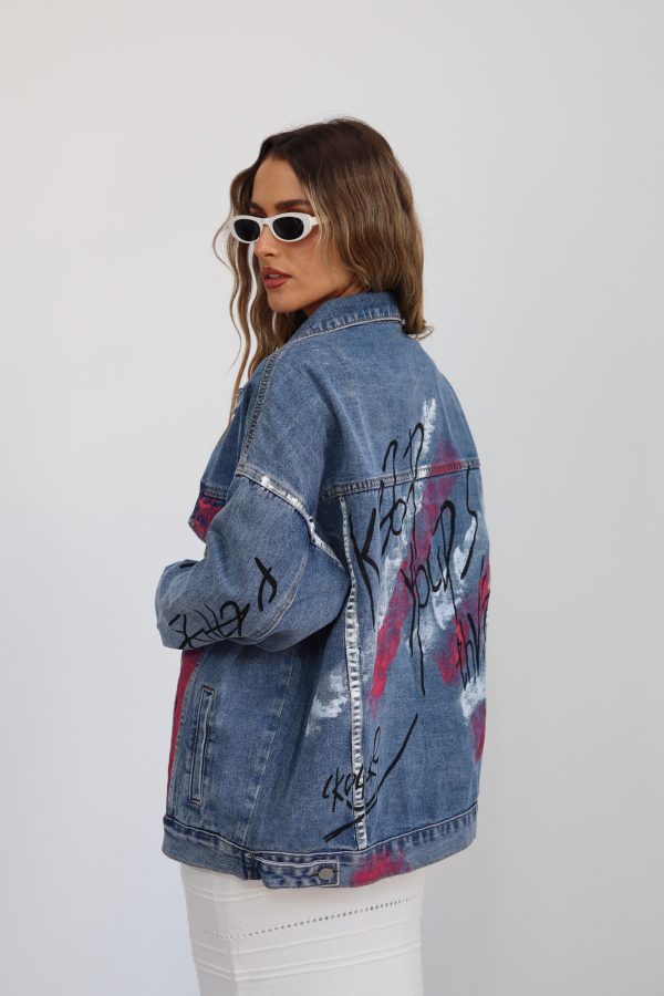 ג'קט ג'ינס עיצוב גרפיטי מהמם ומלא בסטייל