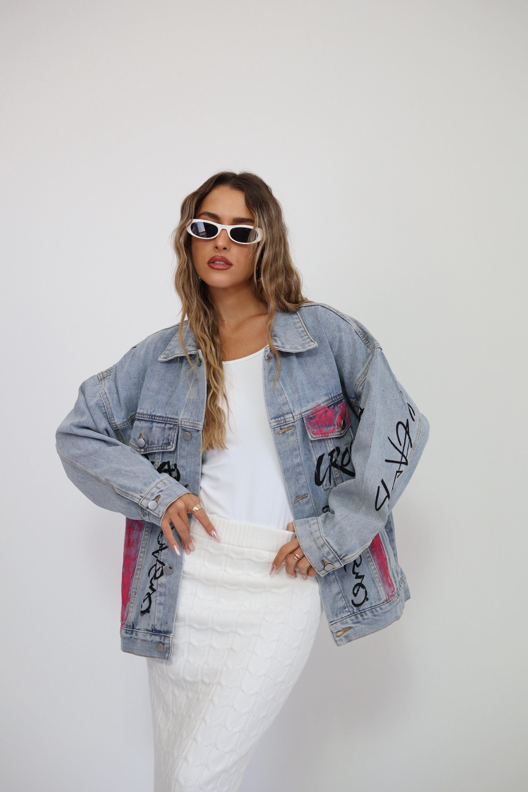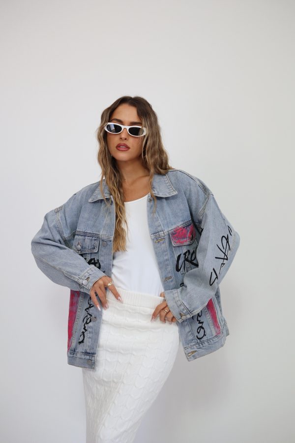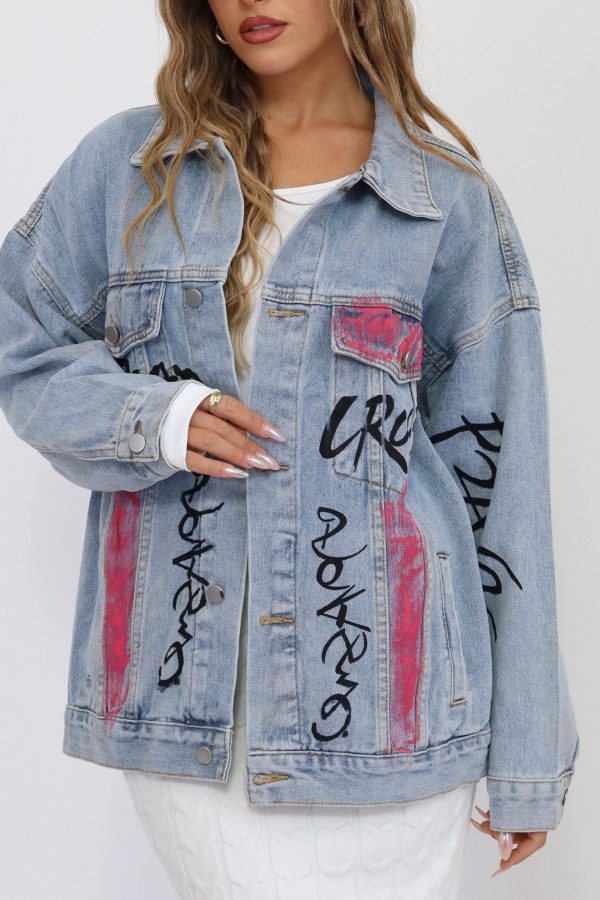 ג’קט ג’ינס עיצוב גרפיטי מהמם ומלא בסטייל