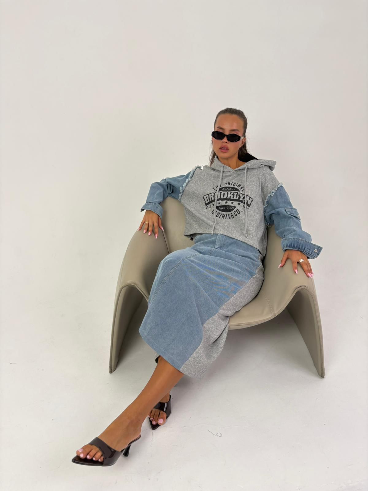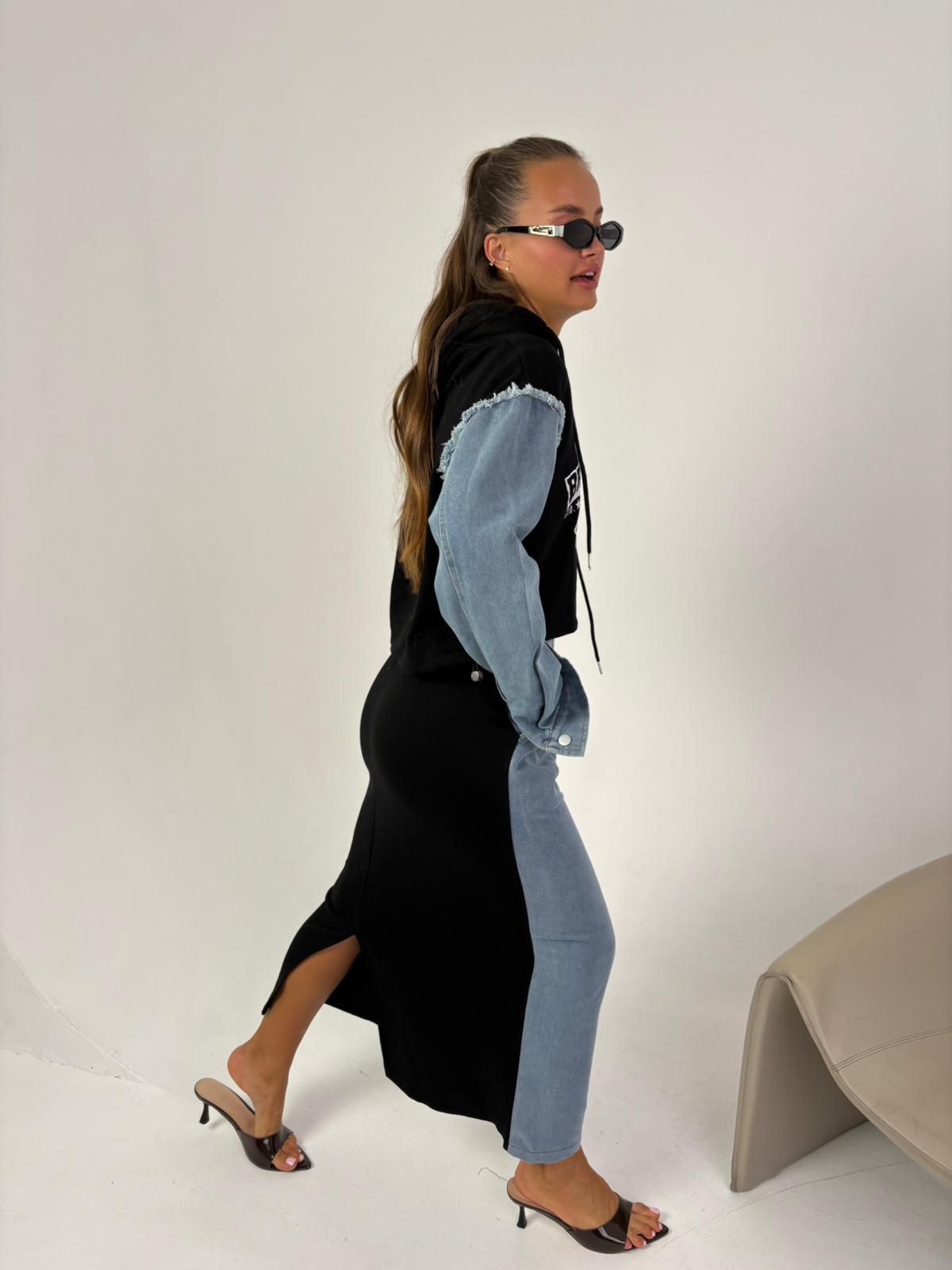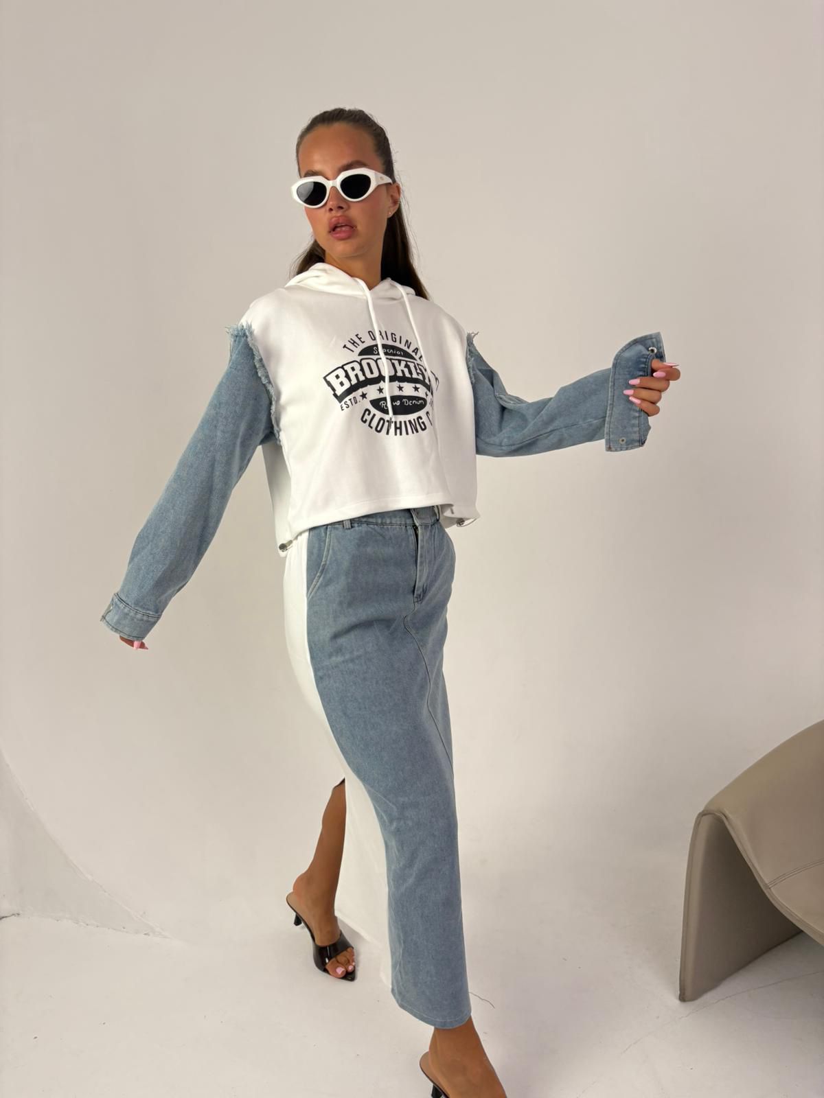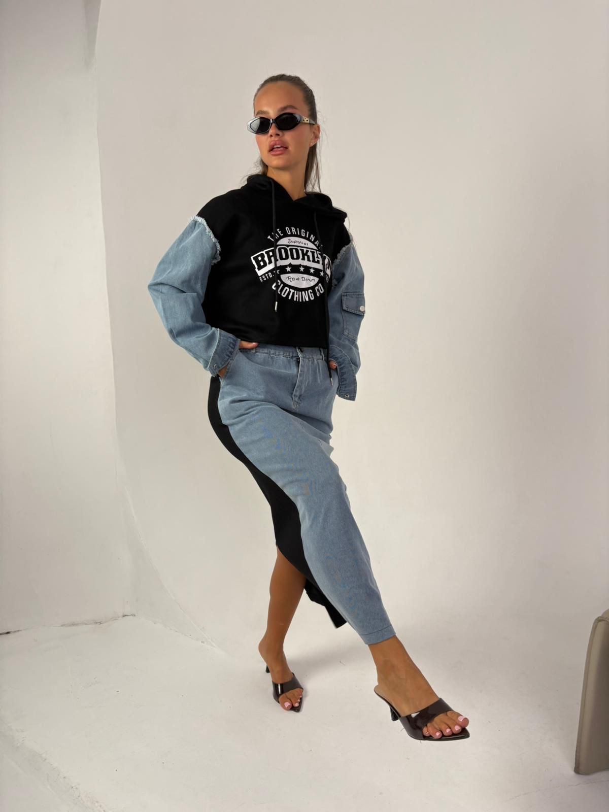 חליפת פוטר ייבוא מוווושלמת :) בשילוב ג'ינס מידות 1-4 בד נמתח על הדוגמנית מצולמת המידה 1