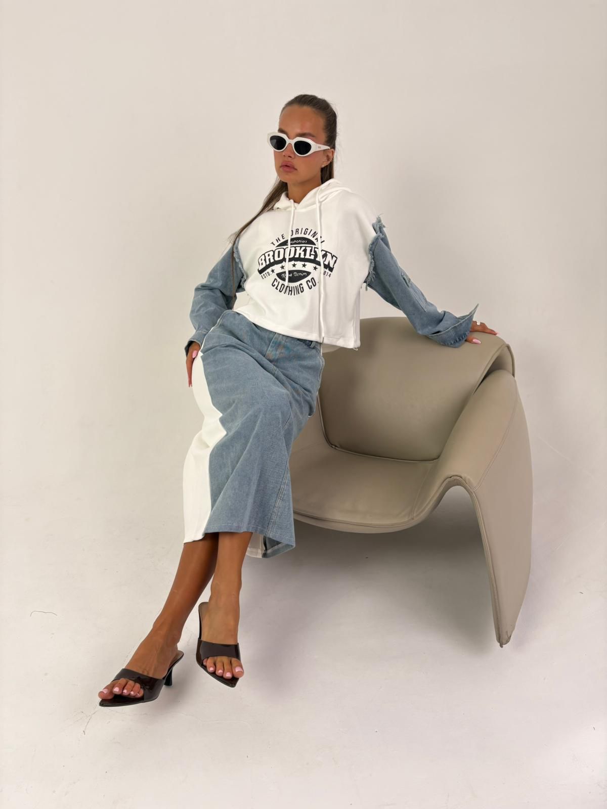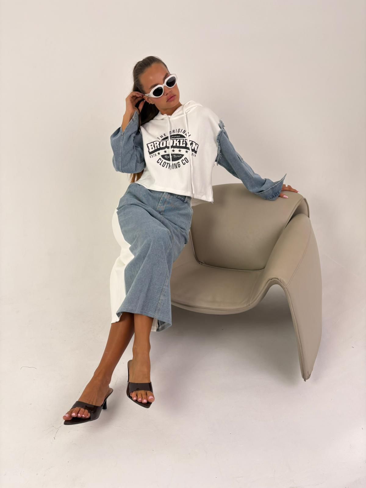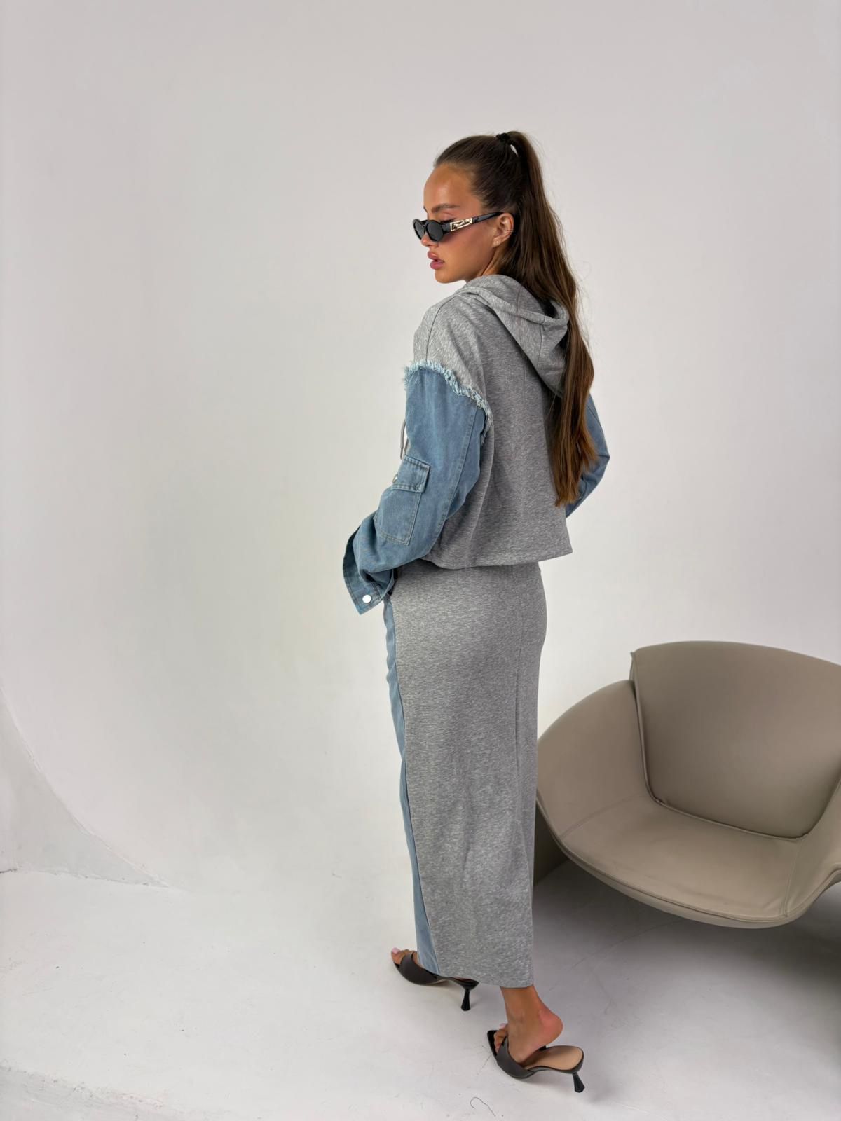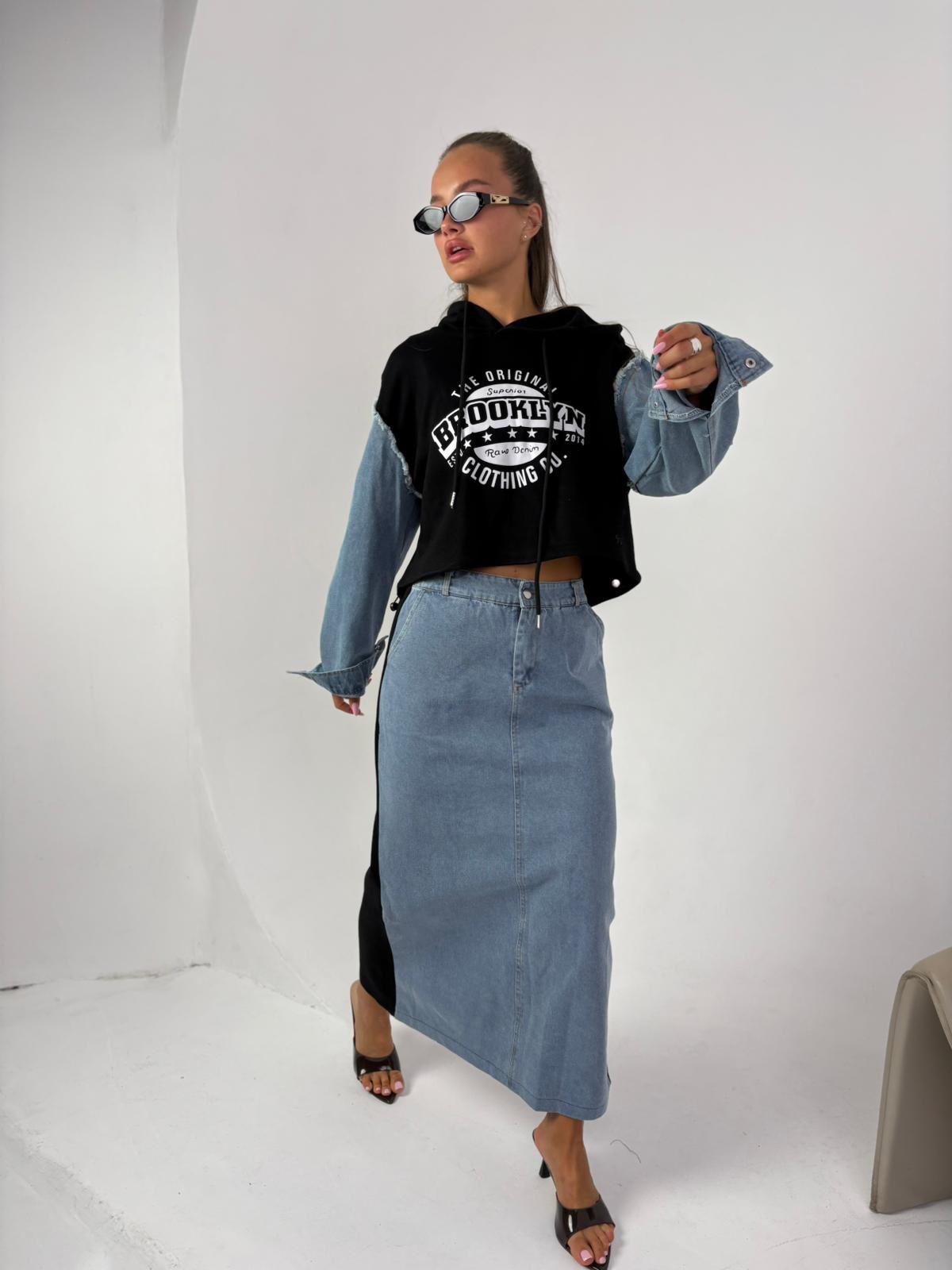 חליפת פוטר ייבוא מוווושלמת :) בשילוב ג'ינס מידות 1-4 בד נמתח על הדוגמנית מצולמת המידה 1