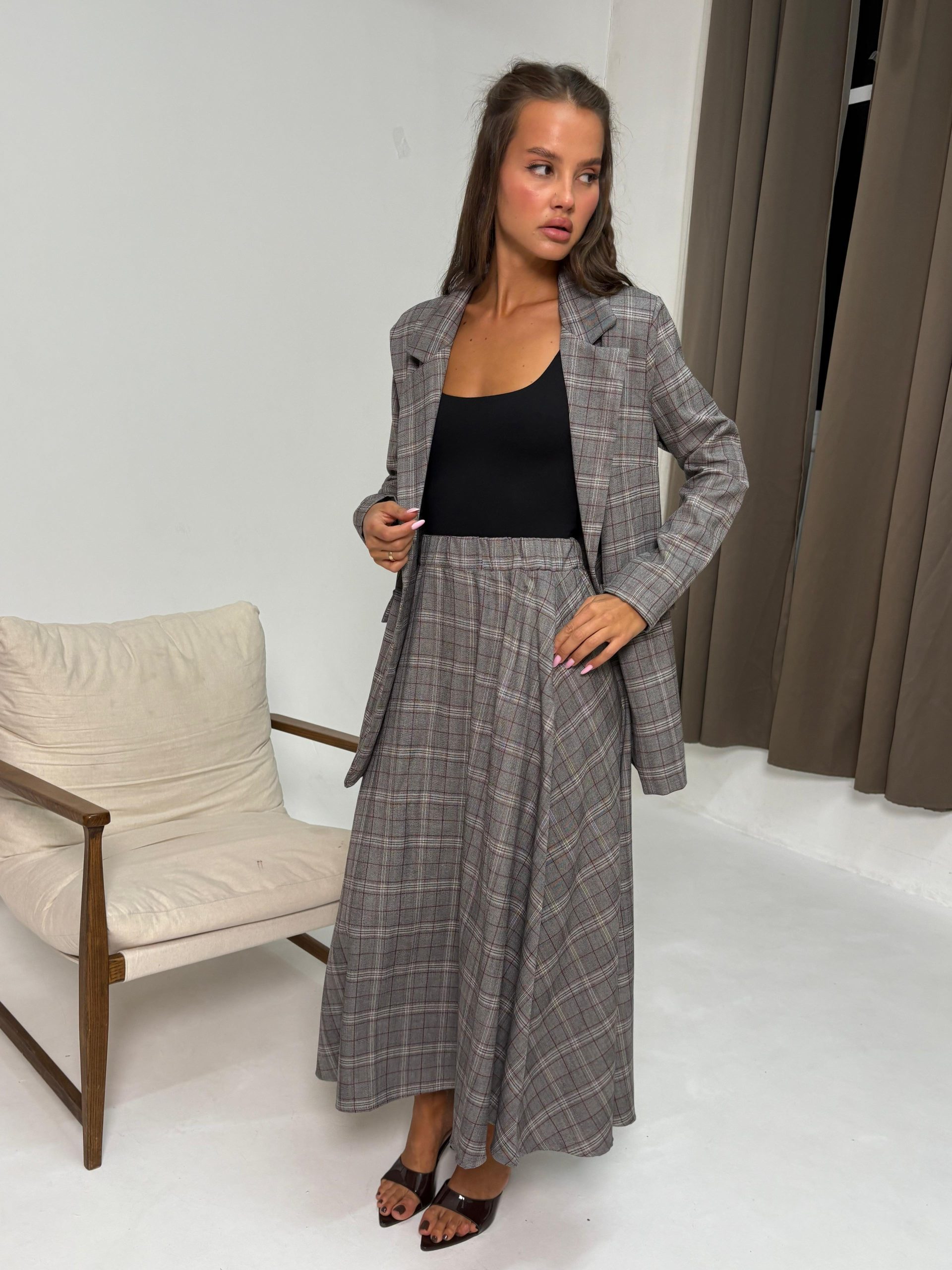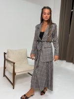 חליפת בלייזר מהודרת משבצות פס בורדו