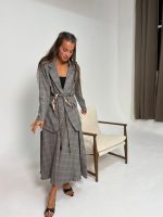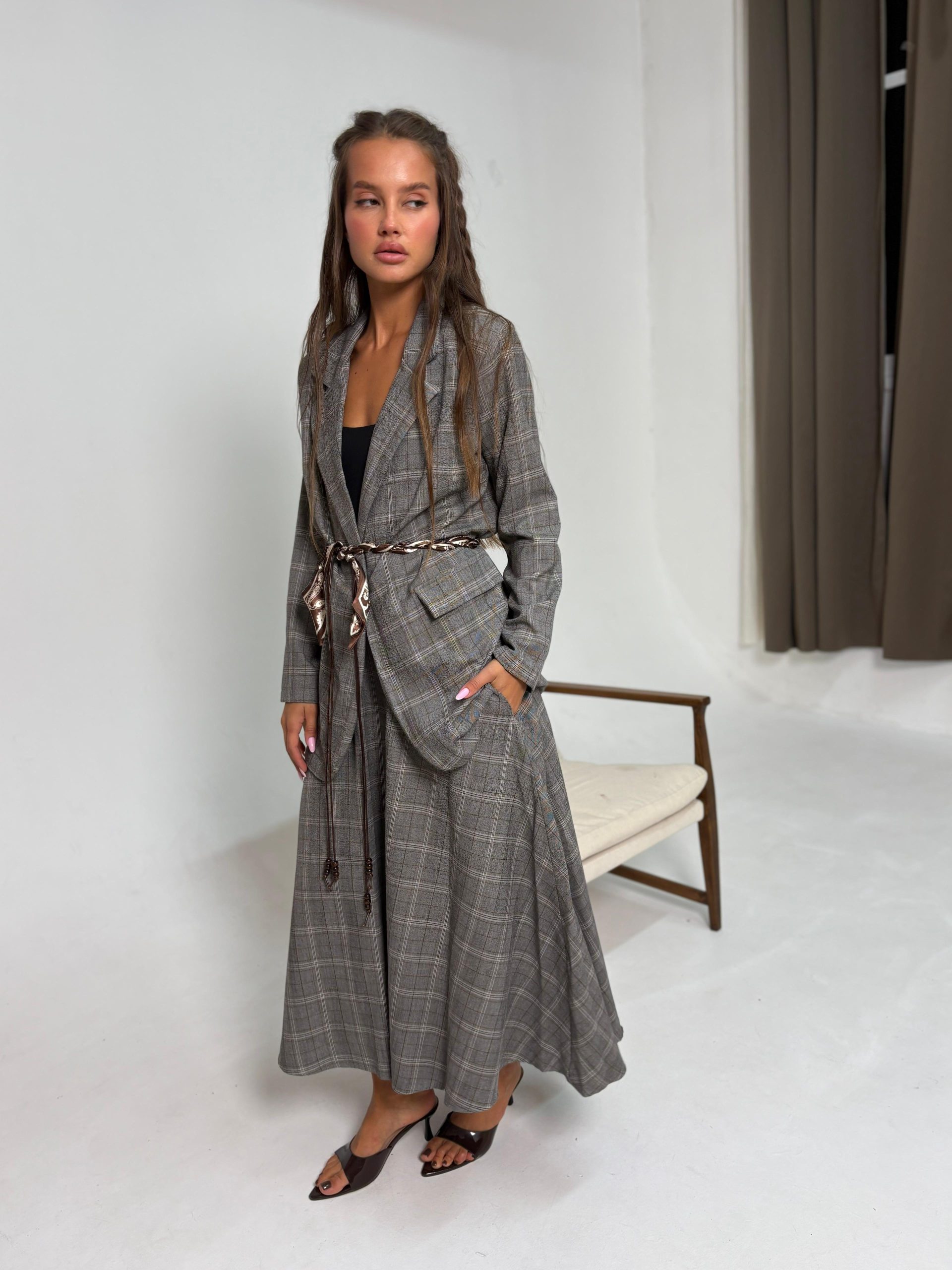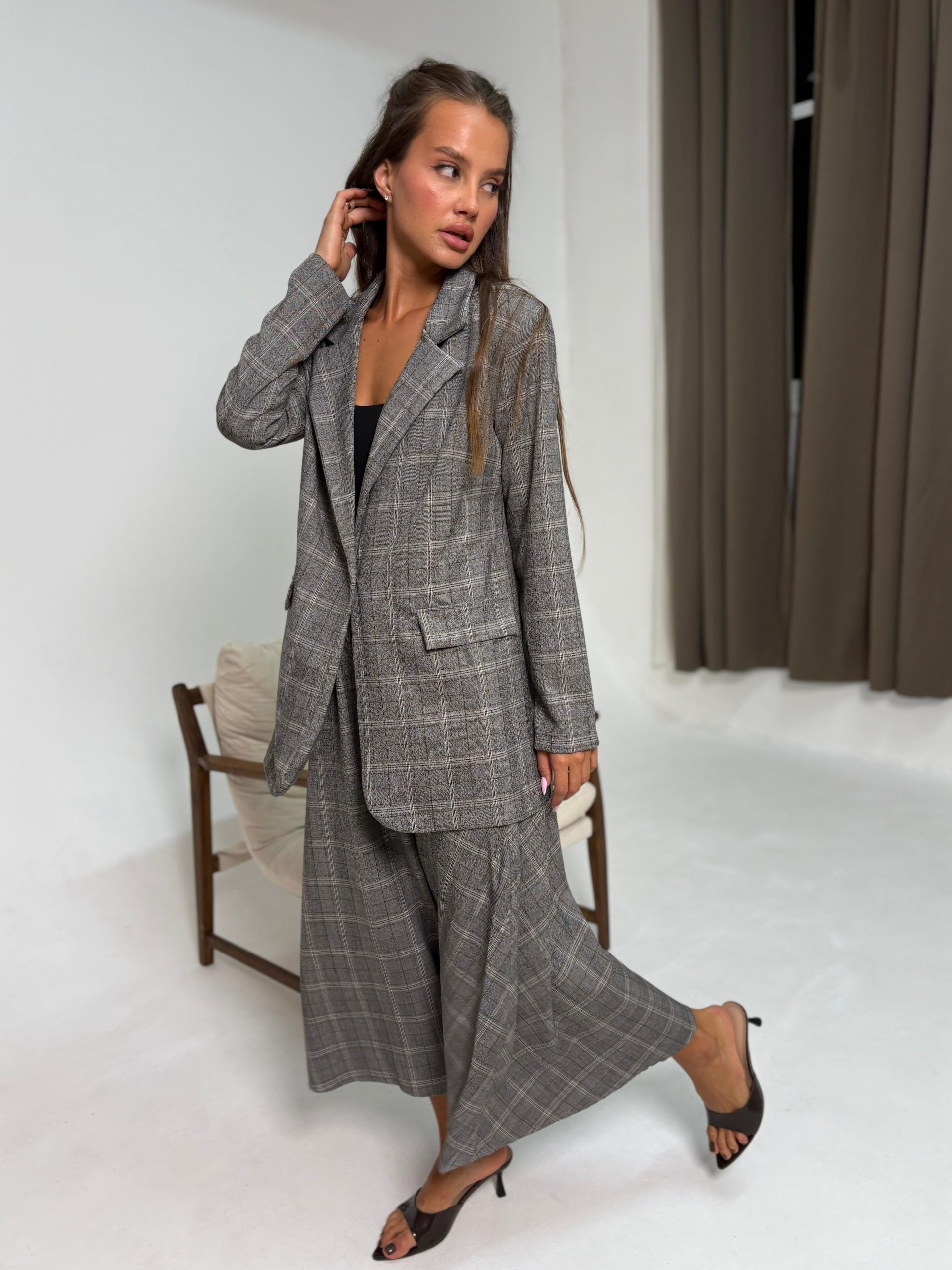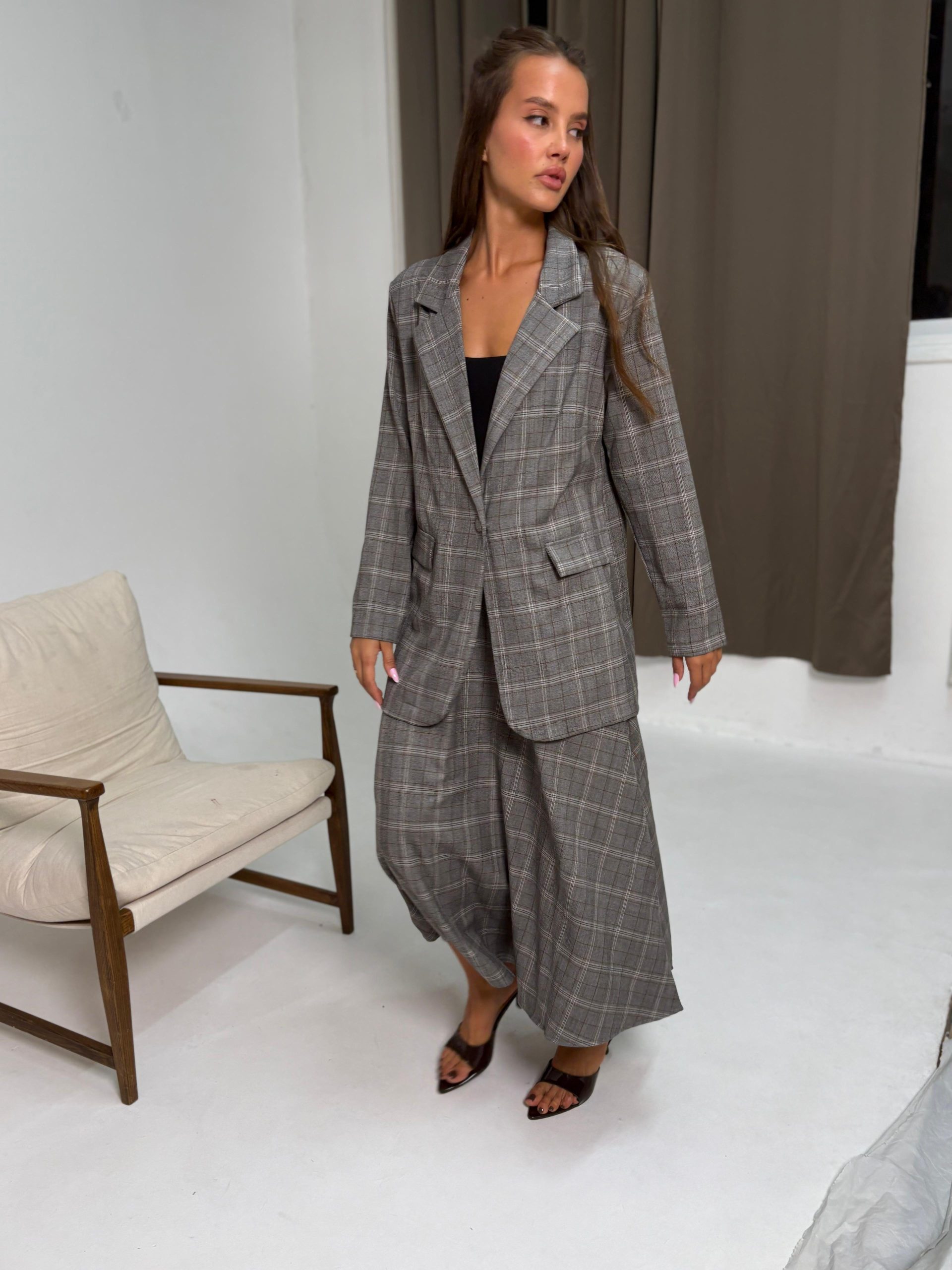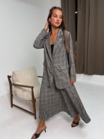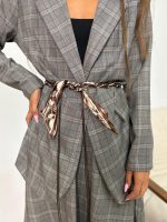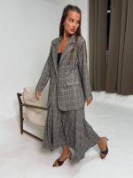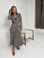 חליפת בלייזר מהודרת משבצות פס חום