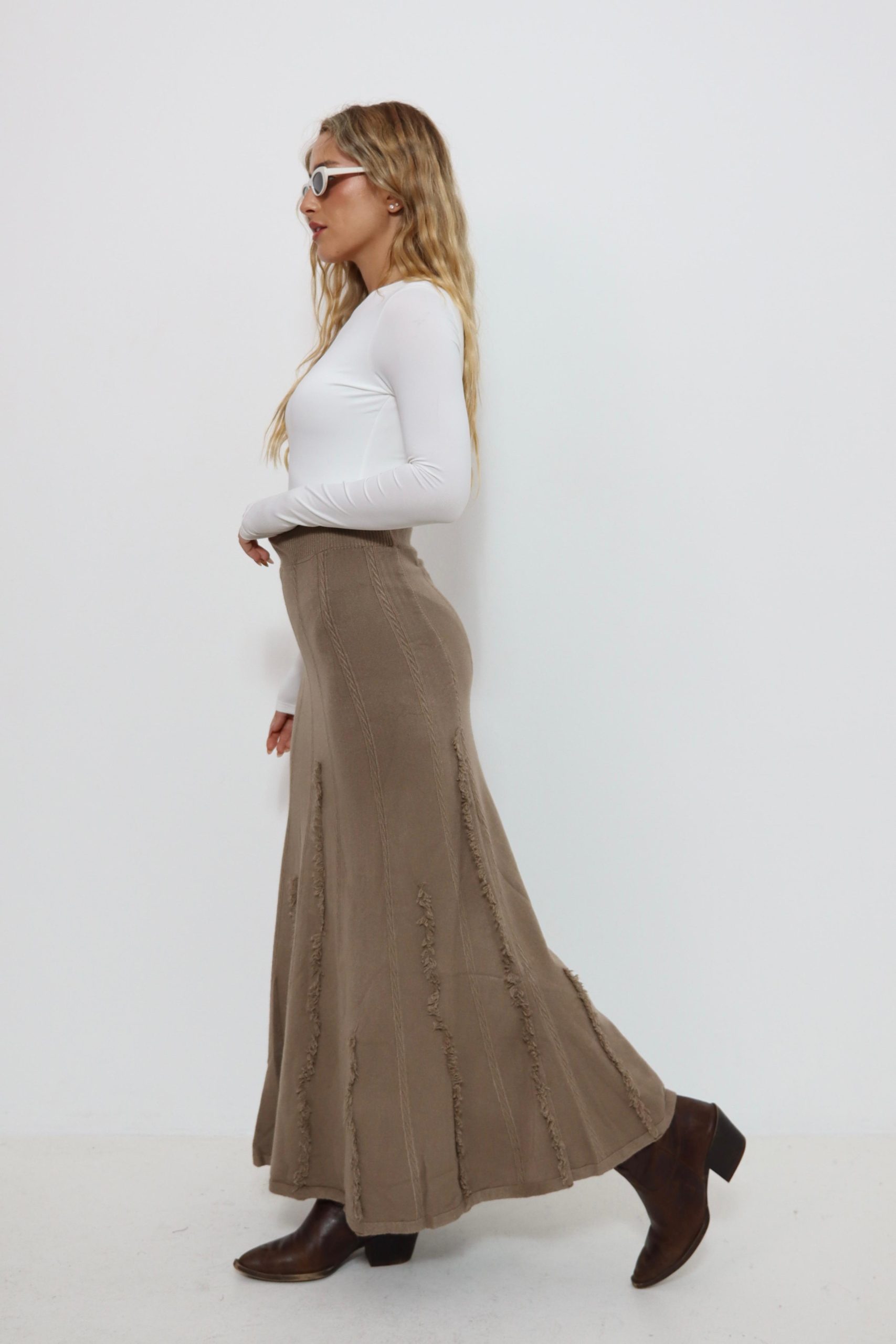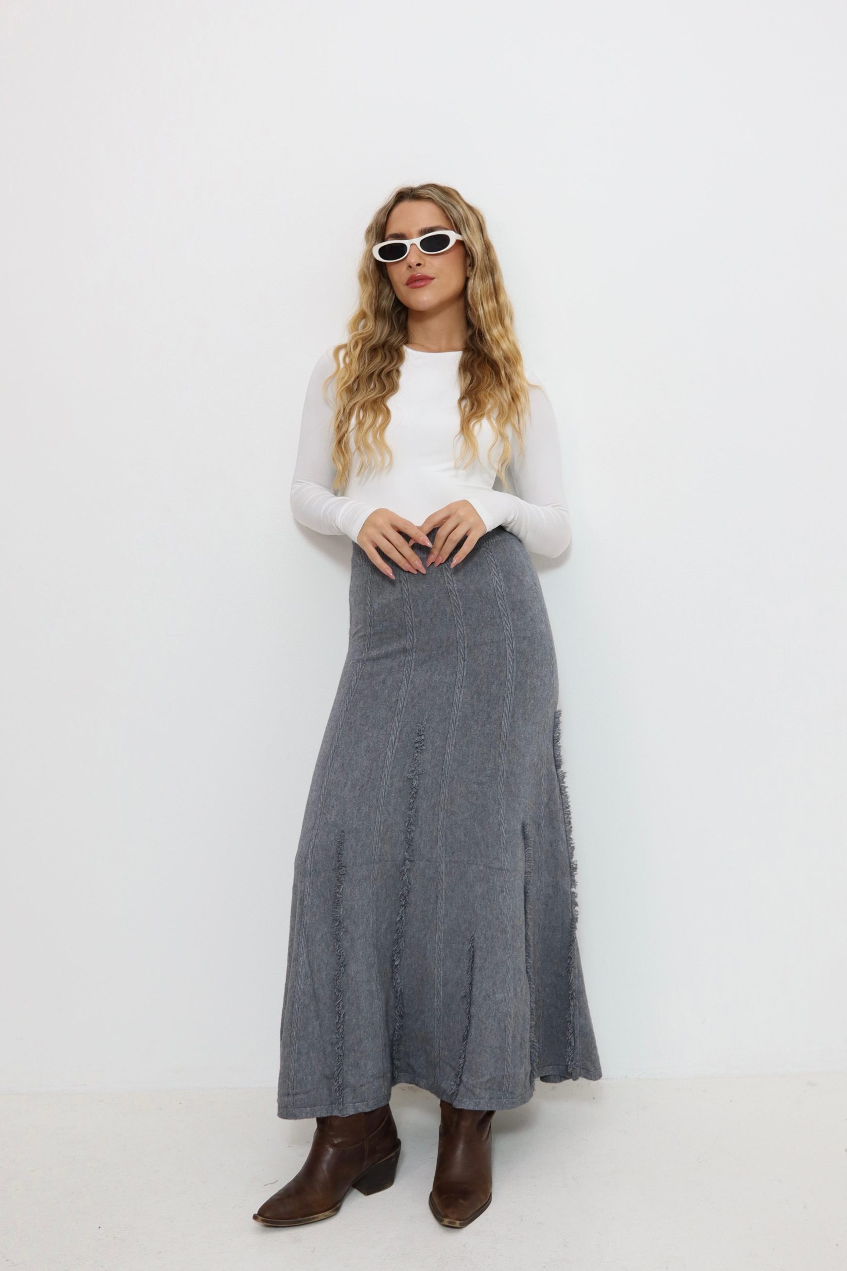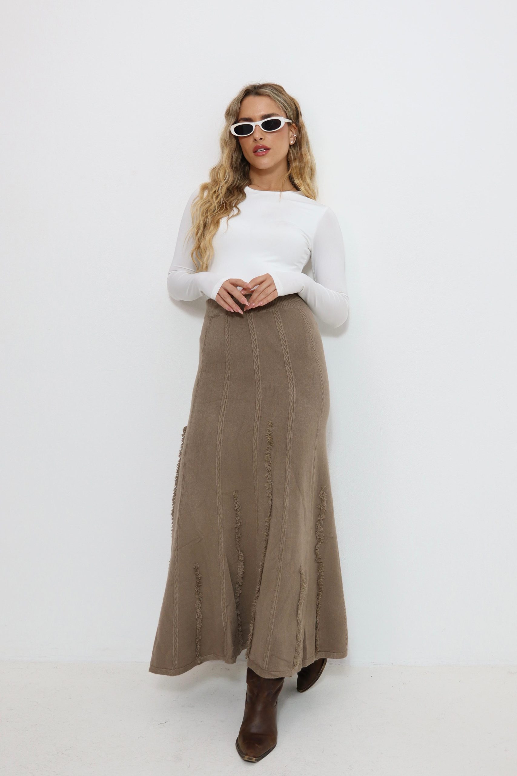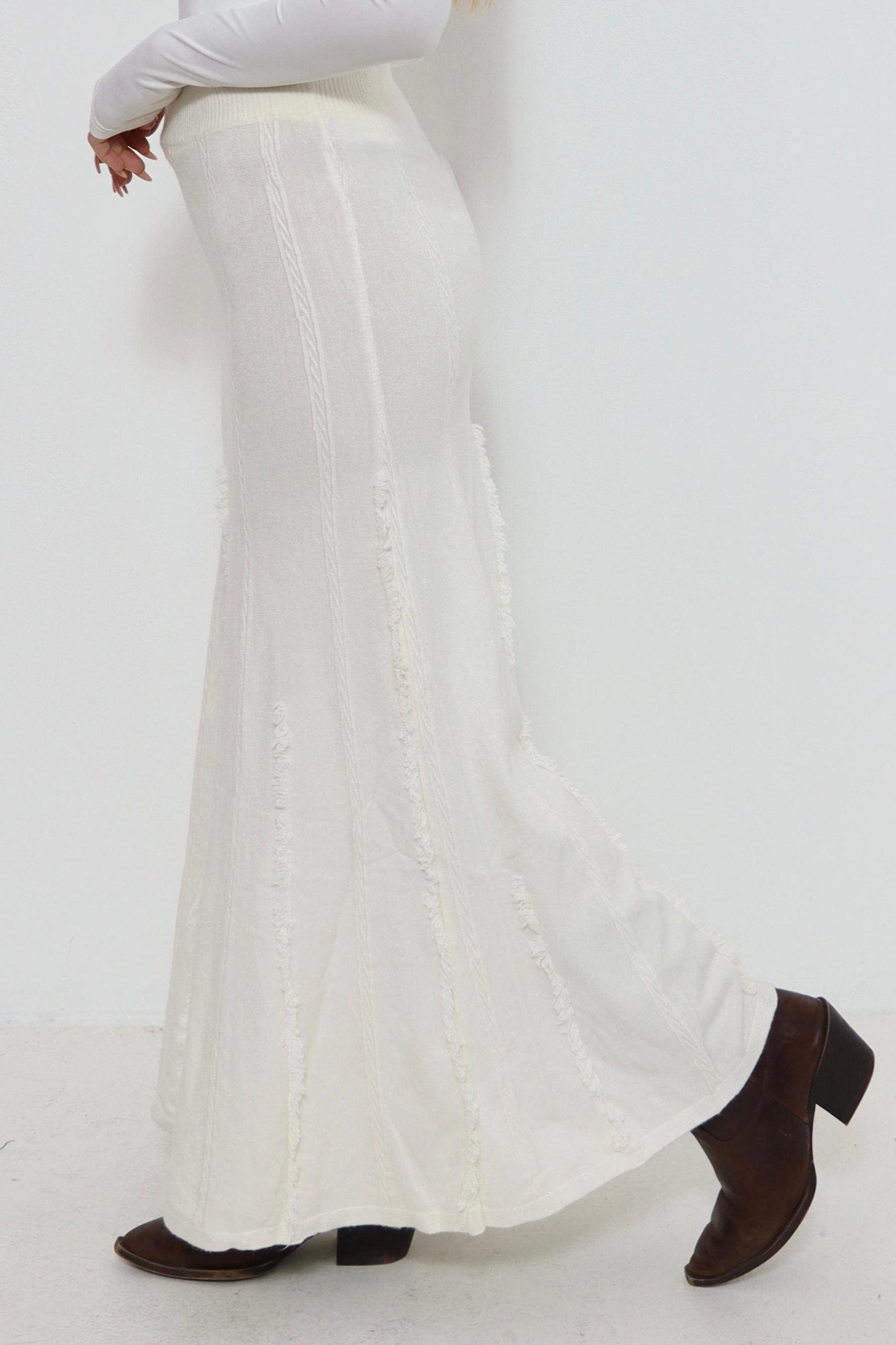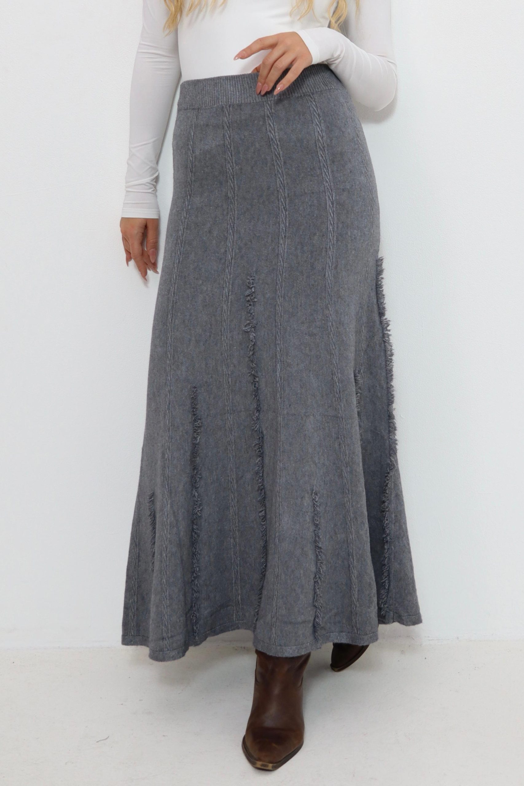 חצאית סריג עם פרנזים בצבעים